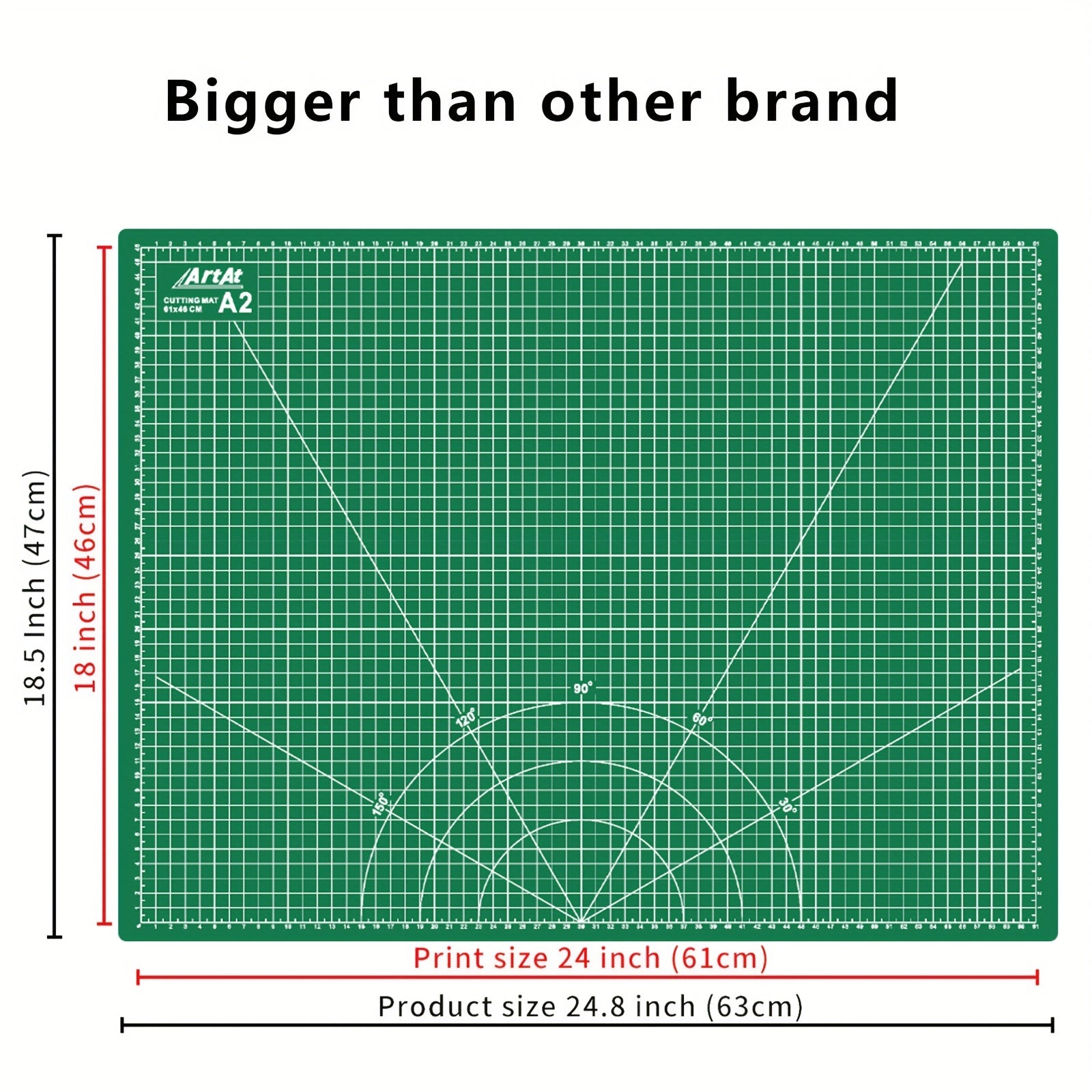 - Generous size measures 24.8 x 18.5 inches (63 x 47 cm) with a 24 x 18 inch grid to fit larger fabrics and pattern pieces.